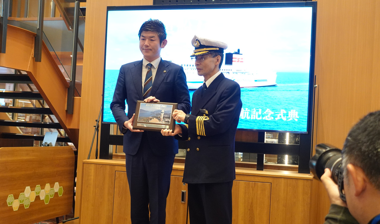 船内の公開に先立って記念式典が行われ、新日本海フェリー・入谷泰生社長や、鴨田秋津舞鶴市長、京都府副知事などが祝辞を述べた。