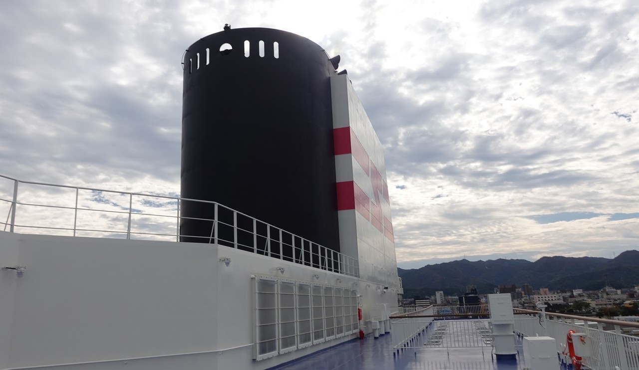 さらに「けやき」は海上でも繋がるフリーWi-Fiを用意しており(一部キャリアは有料の場合あり)、フカフカのベッドで波の音を聞きながら…全長約200m・約1.4万トンの”大船”で、アンチローリングタンク・フィンスタビライザを組み合わせて、省エネも実現したうえで揺れも少ない。まとめると揺れも少なく、ほぼホテルと同様にくつろげるのだ。