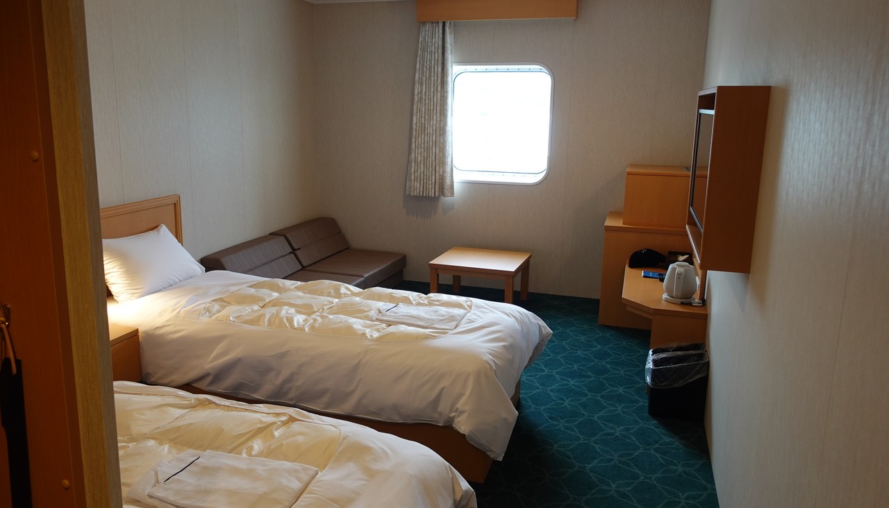 ほか、デラックス・ステートなどの部屋は、ほぼ全て個室仕様。最安値の「ツーリストA」でも半個室仕様で、カプセルホテル並みにプライベートは確保されている。かつ、昔と違うのは、ちゃんとした寝具とコンセントまである。昔のフェリーの最安値は、毛玉だらけのカーペット敷きの床で寝転ぶ「雑魚寝タイプ」であった。