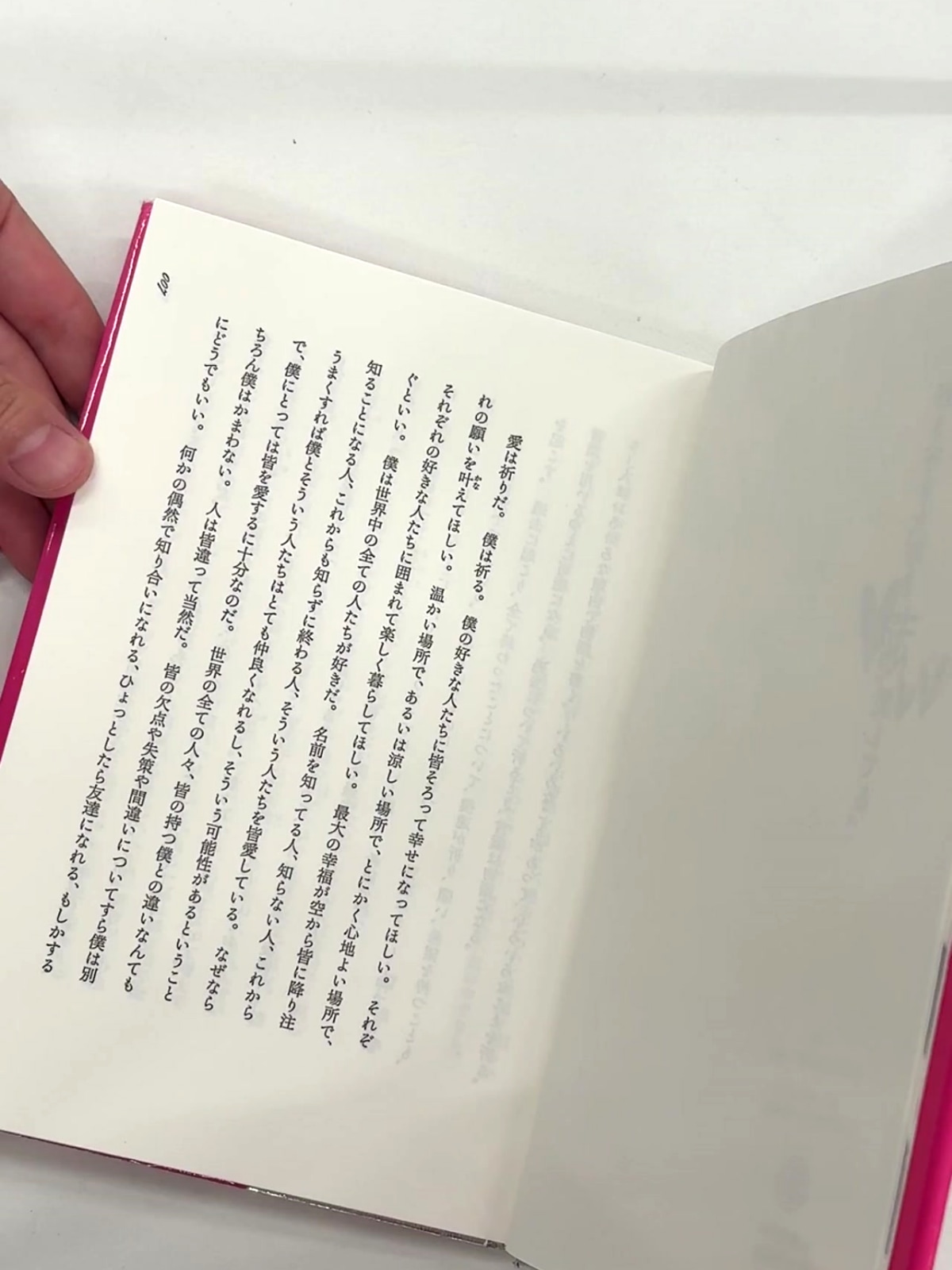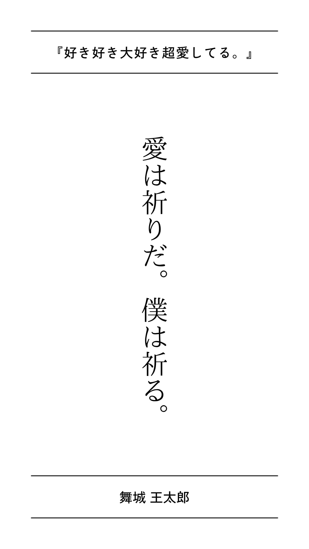 愛を宗教的な「祈り」に重ねることで、感情を超えた絶対性を提示。短文の反復が切実さを強調し、哲学的な深み/緊張感で読者を一瞬で物語へと引き摺り込む。(編集カ)