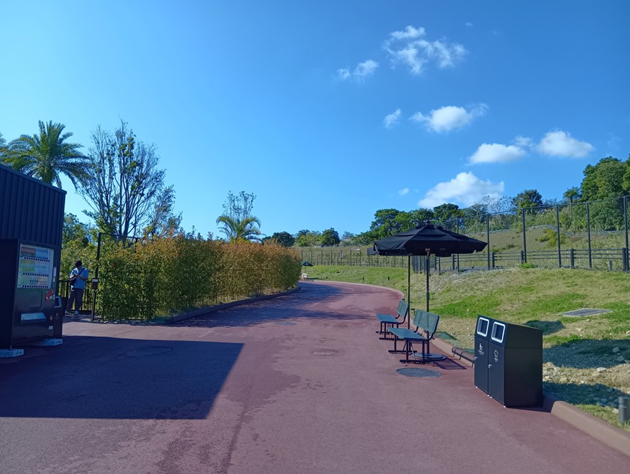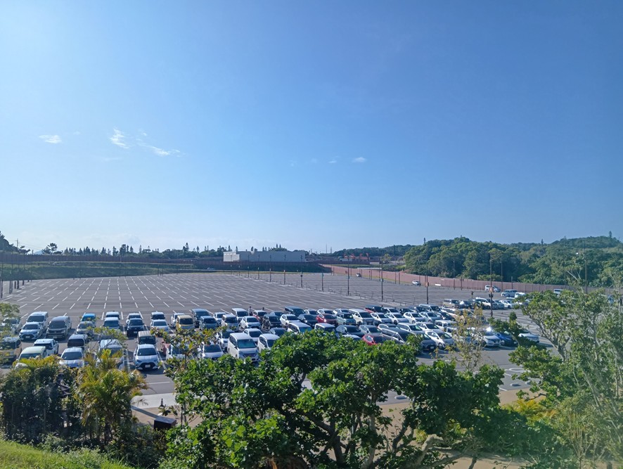 その後、16時過ぎのバス(那覇空港行き)が来るまで、私はパーク内外をブラブラして過ごした。お土産屋さんを見に行ったり、駐車場の混雑状態を確認したり、パーク内にある円周の歩道を“2回転”したり……(ちなみに20分くらいあればパーク内を1周できる)。