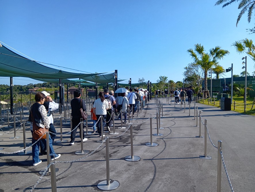 食後はパーク内をプラプラ散策した後、当選した整理券のアトラクション(足場の悪い吊り橋を進んでいくアトラクション)へ向かった。近くに韓国人の男性グループがいたので、「ジャングリアgood? bad?」と質問してみたところ、「a little good」と回答があった。ちなみにマレーシアから来た家族は「very good」、名古屋から来た20代男性は「70~80点くらい」だと教えてくれた。