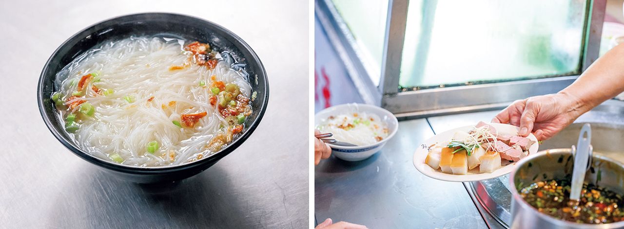 こしのあるビーフンとやさしいスープが、朝の体に染み渡る。ビーフンは新鮮なホルモンなど、小皿料理といっしょにいただいても◎!