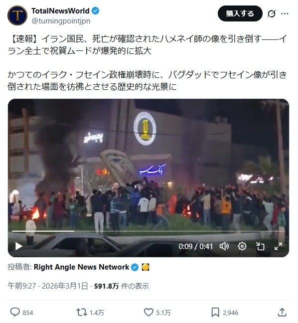 アメリカとイスラエルによるイラン攻撃。最高指導者ハメネイ師をはじめとした指導部の殺害により、世界は「いよいよ第三次世界大戦か」という不穏な空気に包まれつつある。