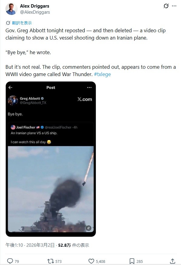テキサス州知事もゲーム映像に騙された