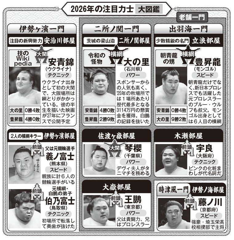 この「三帝」に注目するだけでも十分に楽しめる。だがもうひとつ、覚えておくだけでより相撲観戦の熱が高まるような有力部屋がある。次世代のモンスターたちが集結する「伊勢ヶ濱部屋」だ。