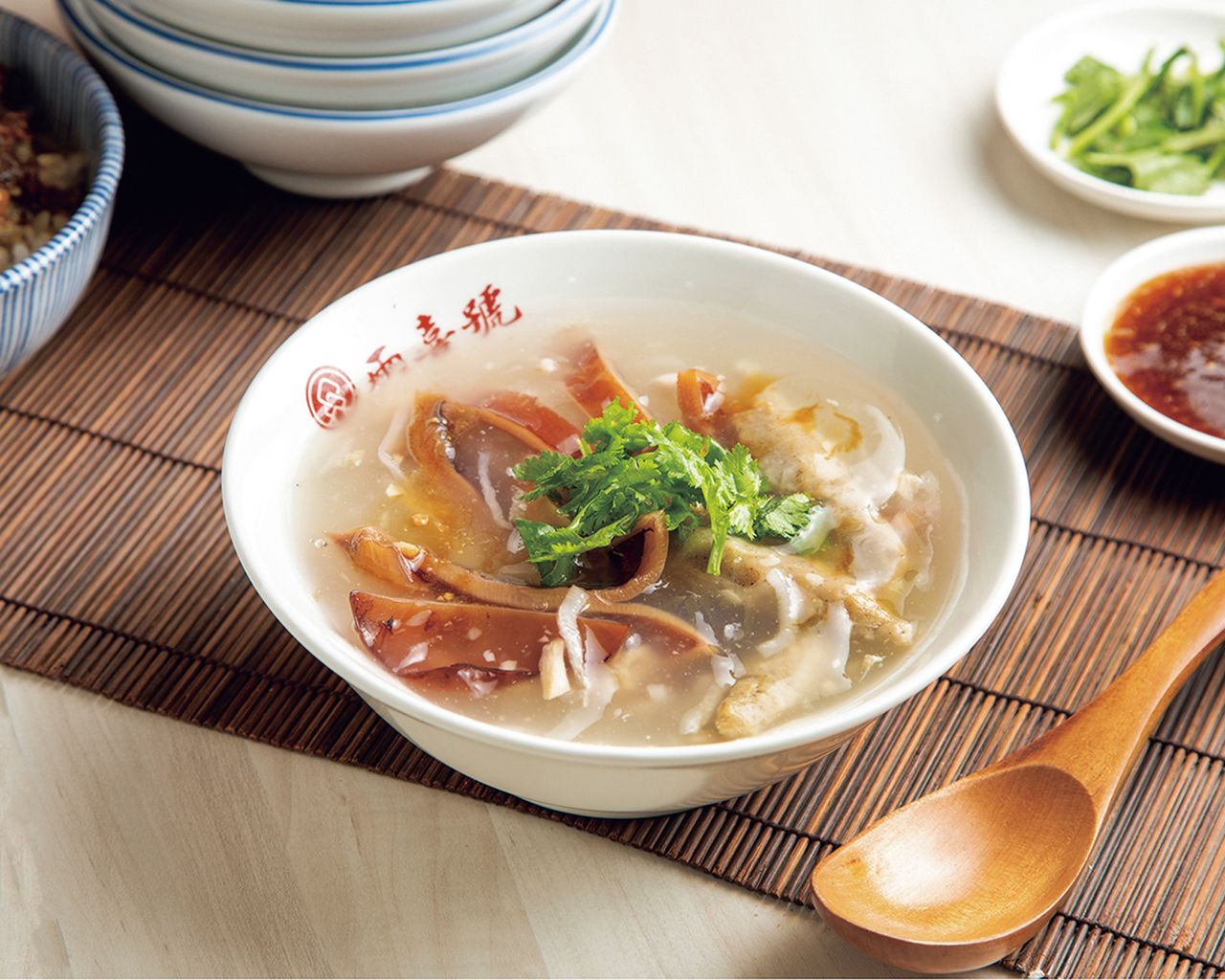 新鮮なコウイカを使った、甘みとコクのあるとろみスープが名物。スープのなかには麺、ビーフン、春雨、ご飯から好きなものを選んで入れられる。