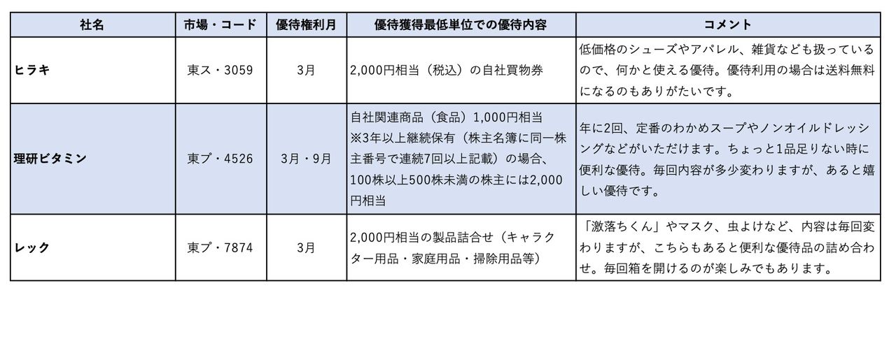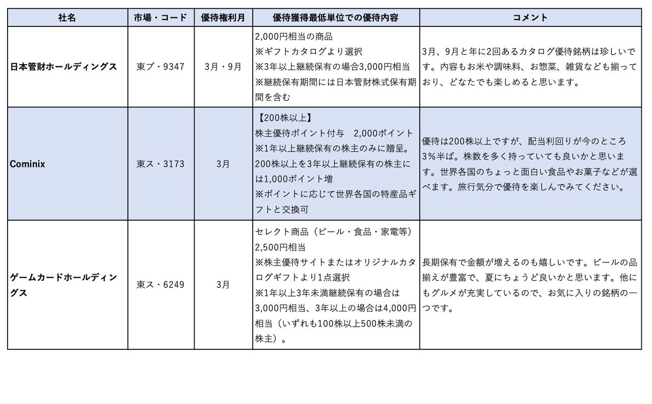 今回は、3月末に優待権利が確定する、充実のカタログ優待銘柄や外食銘柄、そして生活防衛銘柄を紹介します。